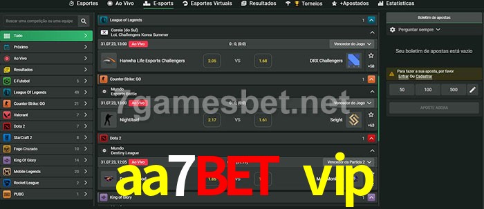 A aposta aa7bet vip oferece aos jogadores a experiência mais conveniente de apostas em eSports!